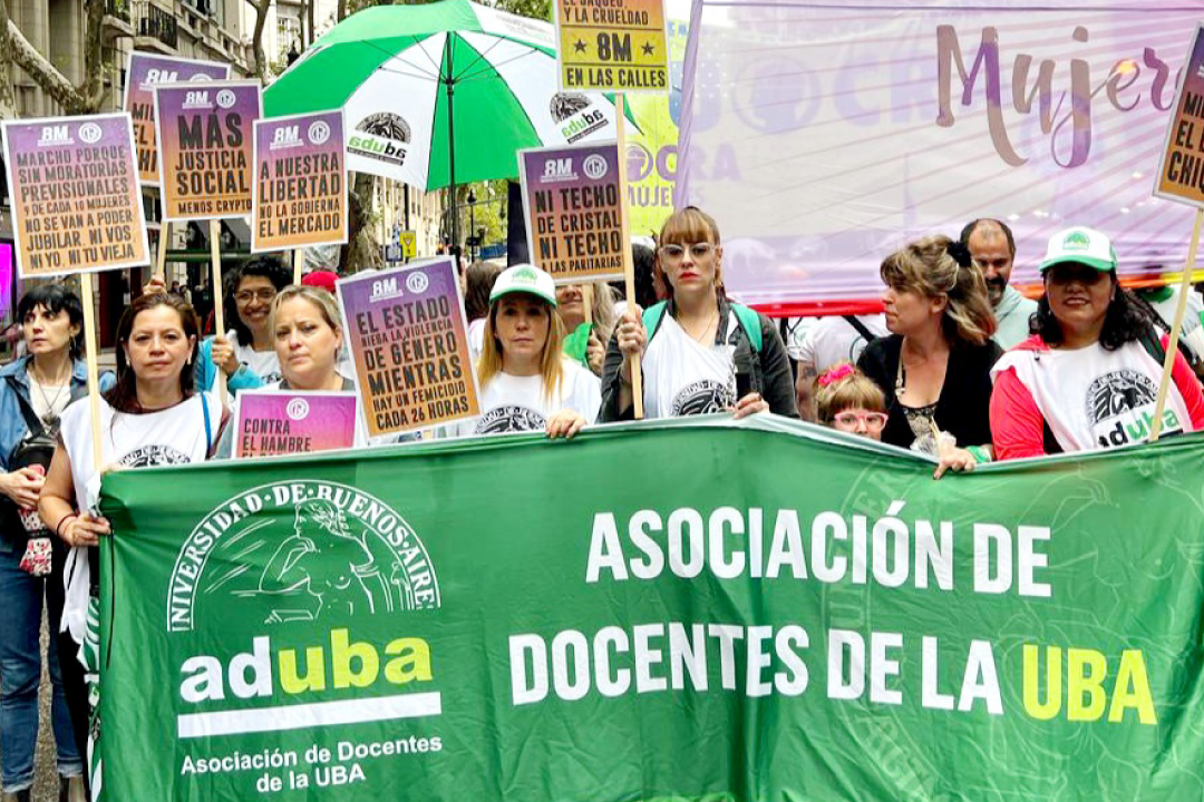 Las mujeres trabajadoras docentes de la Asociación de Docentes de la Universidad de Buenos Aires participaron de la Marcha por el 8M y expresaron su compromiso con la defensa de la igualdad de derechos y la erradicación de la violencia contra las mujeres.