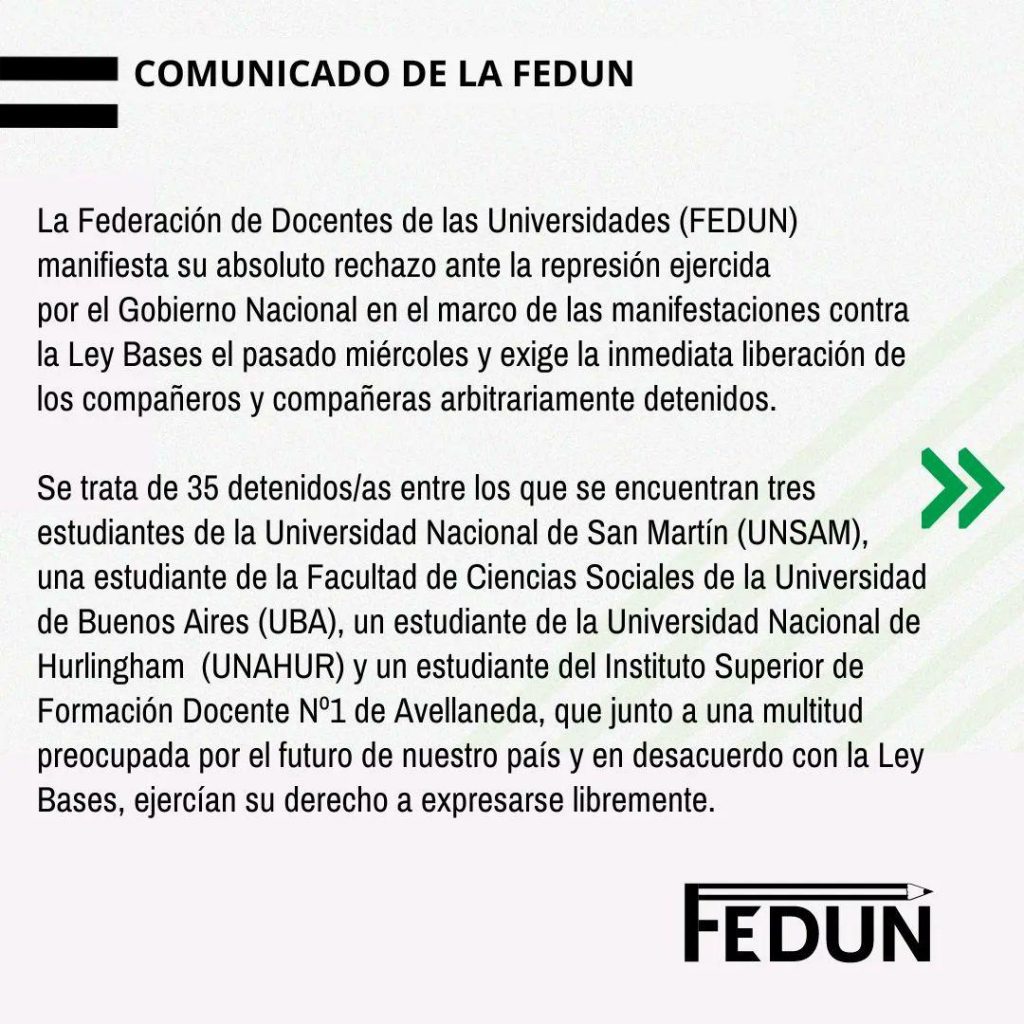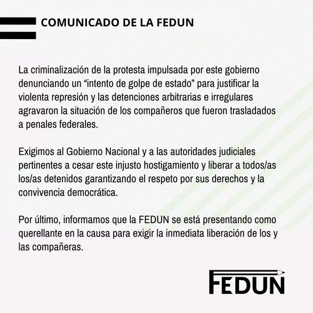Exigimos la inmediata liberación de los/as detenidos/as durante el tratamiento de la Ley Bases.
